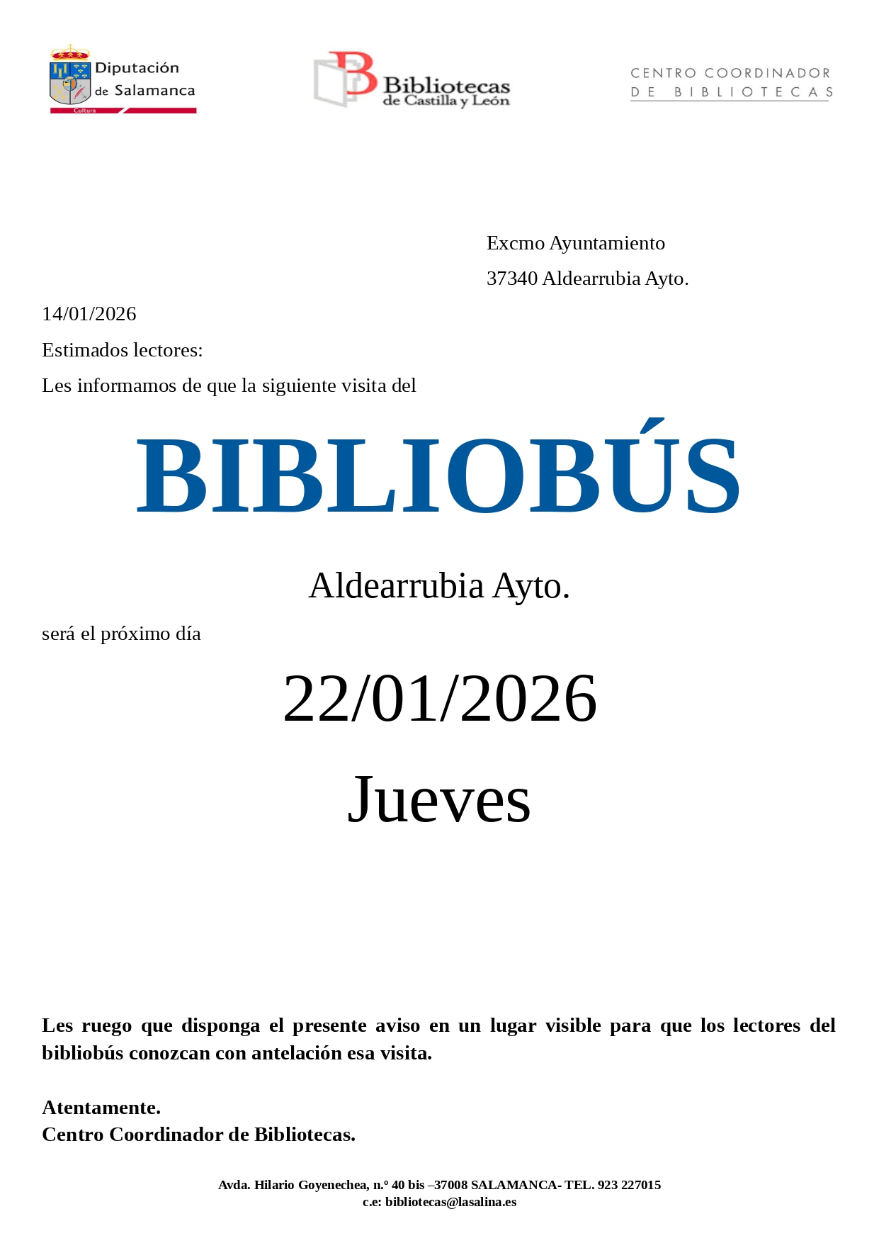 Plaza de la Villa, 5. 37340. Aldearrubia. Salamanca. Tel/Fax 923 363 110